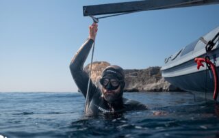 Le bateau est également équipé pour l’apnée : bouées dédiées, potence d’apnée : un équipement technique rare, offrant un haut niveau de sécurité et de confort.