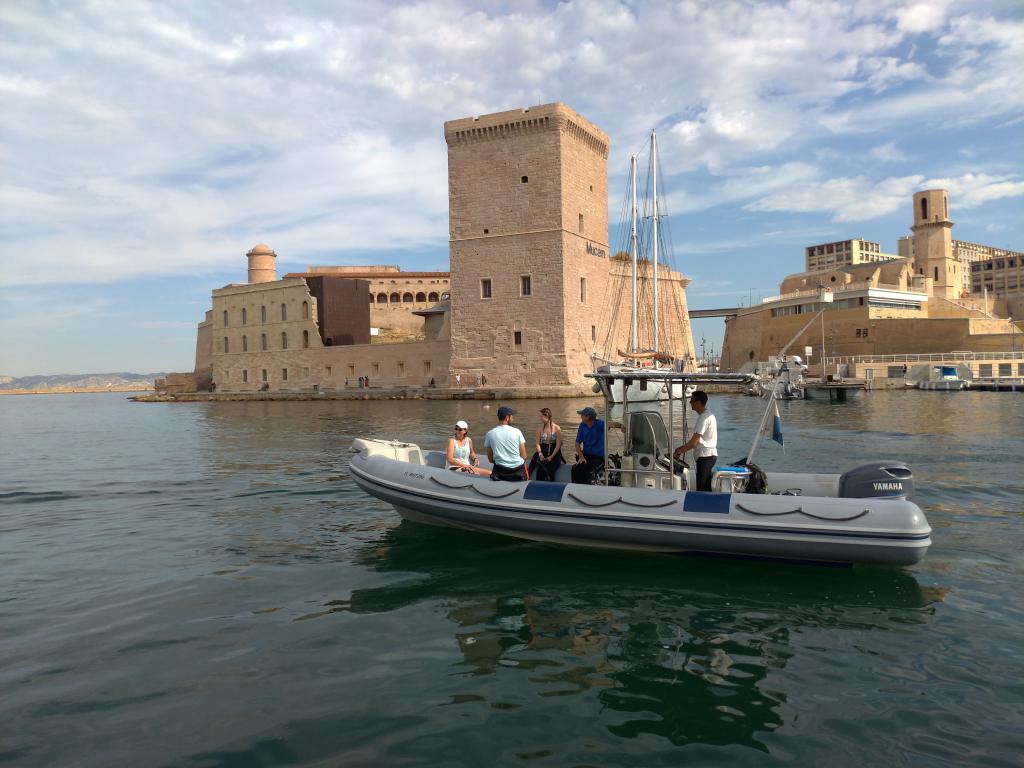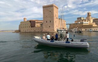 Notre point de départ est situé au cœur du Vieux-Port, au pied du Fort Saint-Nicolas : Un emplacement unique, qui permet en quelques minutes de navigation d’accéder au Parc national des Calanques.