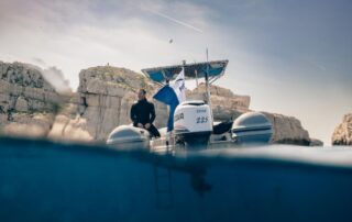Nous naviguons à bord d’un semi-rigide rapide, maniable et parfaitement adapté aux Calanques. Sa capacité maximale est de 23 personnes, mais nous limitons volontairement à 8 participants : un choix assumé pour préserver la qualité de l’expérience.